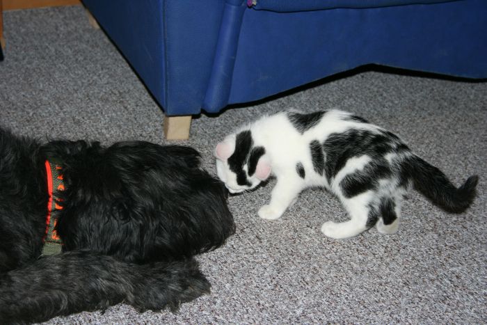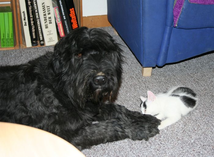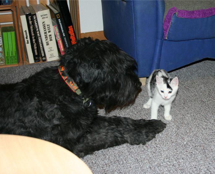 gebracht. Er war so lieb mit den kleinen Katzen, die gleichzeitig einzogen und